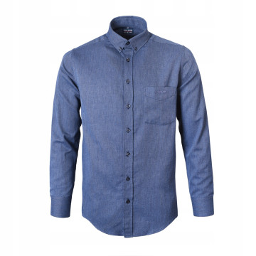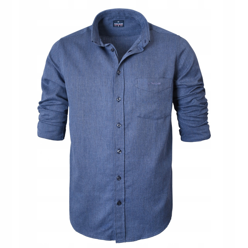 Koszula posiada kołnierzyk button-down oraz kieszonkę na piersi ozdobioną delikatnym haftem, który dodaje całości eleganckiego wykończenia. Głęboki granatowy kolor świetnie komponuje się z jeansami, chinosami czy spodniami materiałowymi, dzięki czemu model sprawdzi się w wielu sytuacjach – od spotkań biznesowych po casualowe stylizacje.