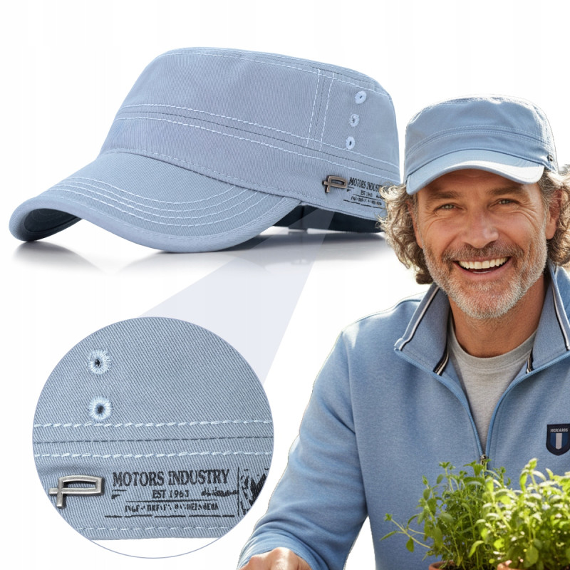 PATROLÓWKA Męska Czapka z Daszkiem Bawełniana BŁĘKITNA Pako Jeans