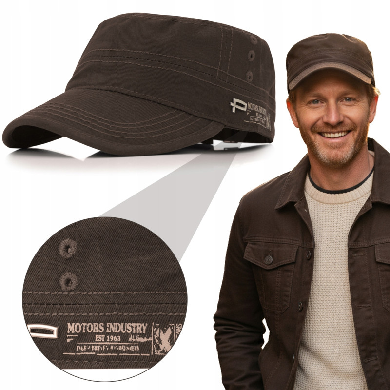PATROLÓWKA Męska Czapka z Daszkiem Bawełniana CIEMNOBRĄZOWA Pako Jeans