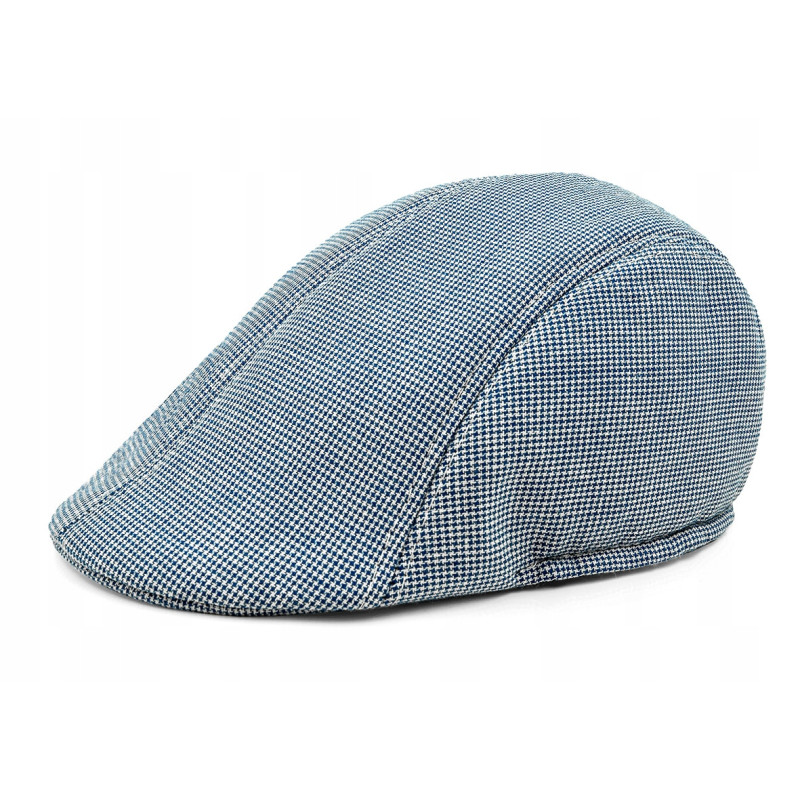 Stylowy kaszkiet męski wykonany z wysokiej jakości tkaniny w klasycznym, granatowym drobnym wzorze. To ponadczasowy dodatek, który doskonale uzupełni codzienne oraz bardziej eleganckie stylizacje. Idealny wybór na wiosenne, letnie i jesienne dni.