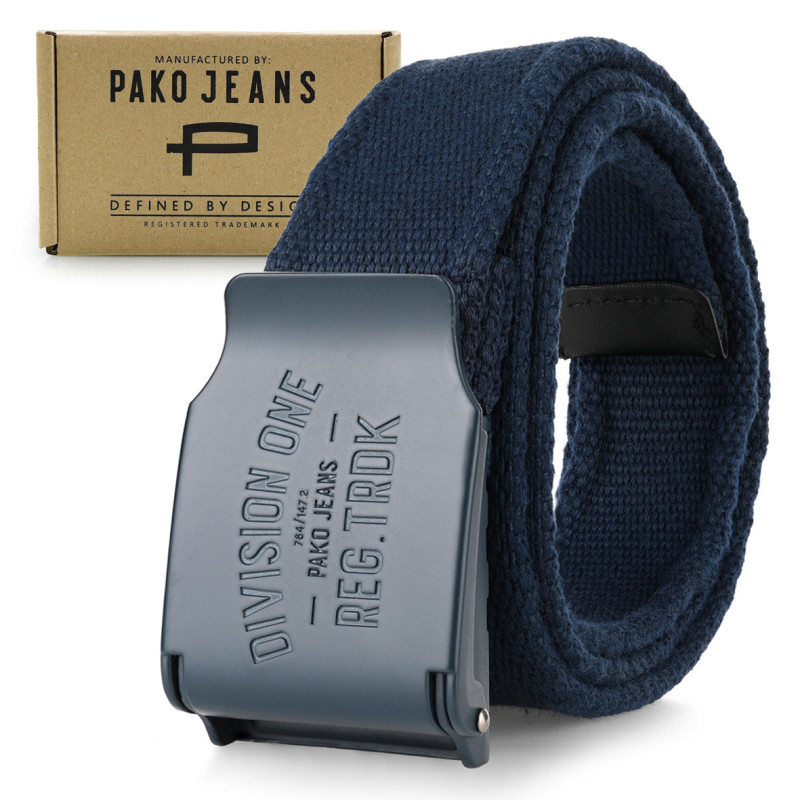 Pasek męski PREMIUM SOLIDNY granatowy parciany Pako Jeans