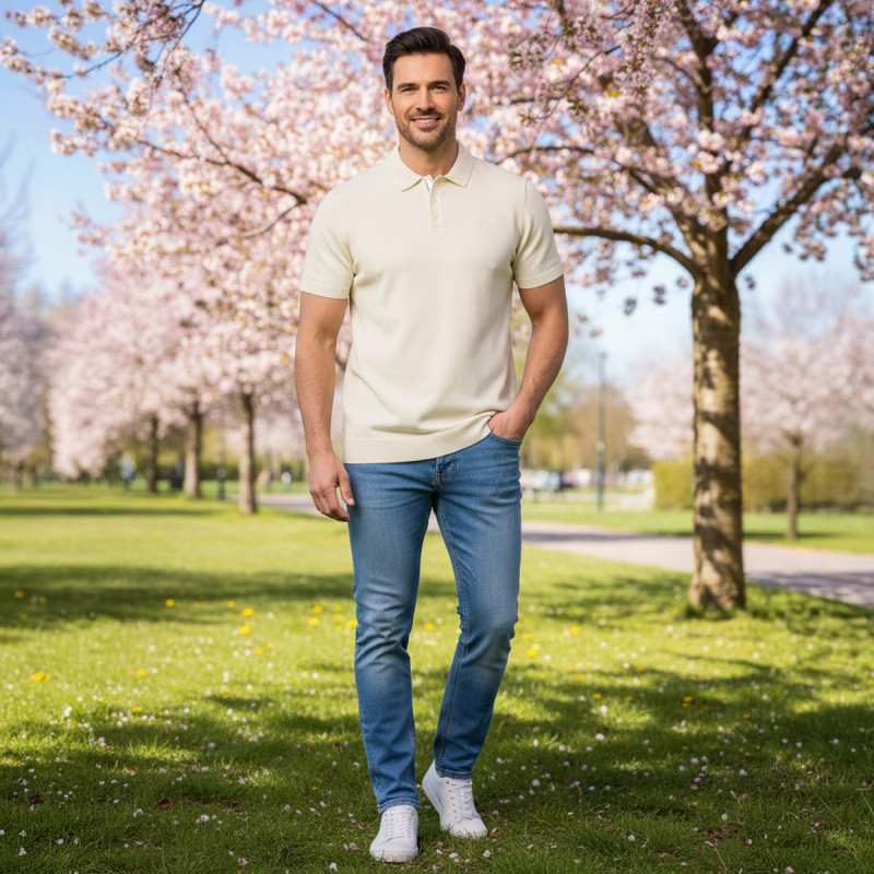 POLO Dzianinowe Koszulka Męska ECRU Bawełniana RIOS Pako Jeans