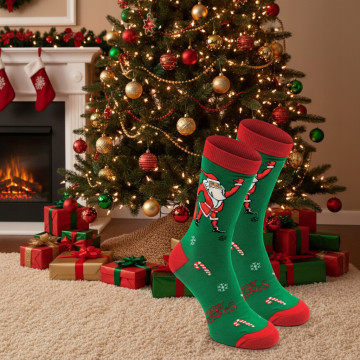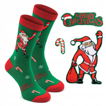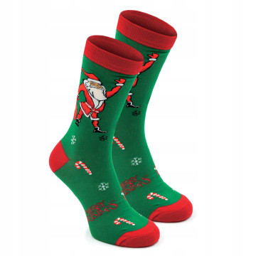 Wesołe skarpetki z motywem świątecznego Mikołaja.