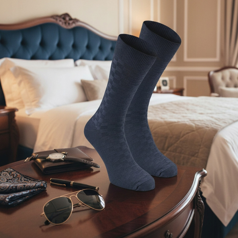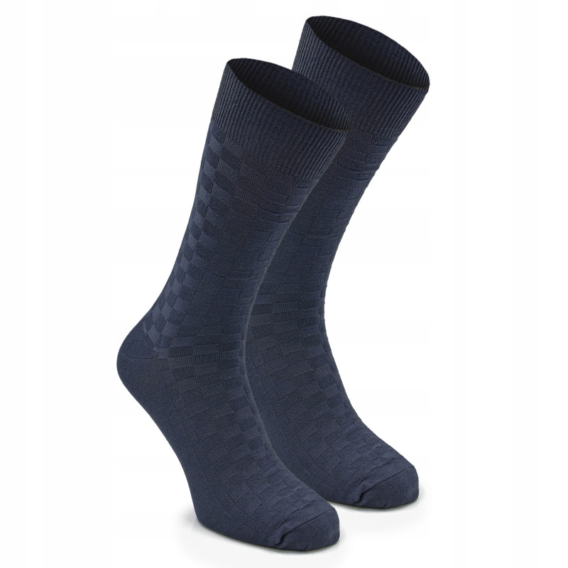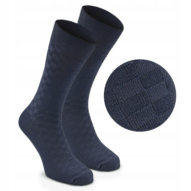 Wysokie Eleganckie SKARPETKI Męskie Bambusowe Elastyczne GRANATOWE One Size