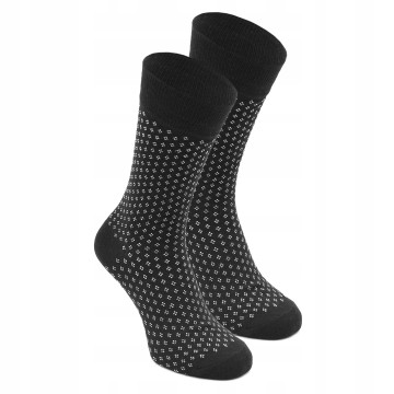 Wysokie Skarpetki Męskie Bawełniane Elastyczne CZARNE z Wzorem One Size