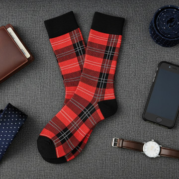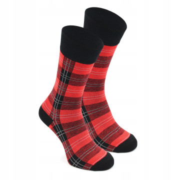 Wysokie Skarpetki Męskie Bawełniane Elastyczne CZERWONE Kratka One Size