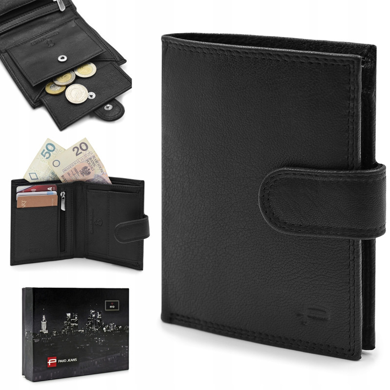 PORTFEL Męski Damski SKÓRZANY Czarny z RFID City Style MIDI Pako Jeans