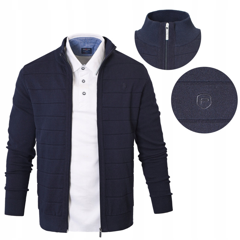 SWETER Męski ROZPINANY Kardigan na Zamek OTTA GRANATOWY Bawełniany Pako Jeans