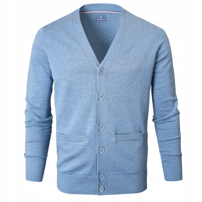 SWETER Męski ROZPINANY Kardigan na Guziki CAMILO BŁĘKITNY Melanż Pako Jeans