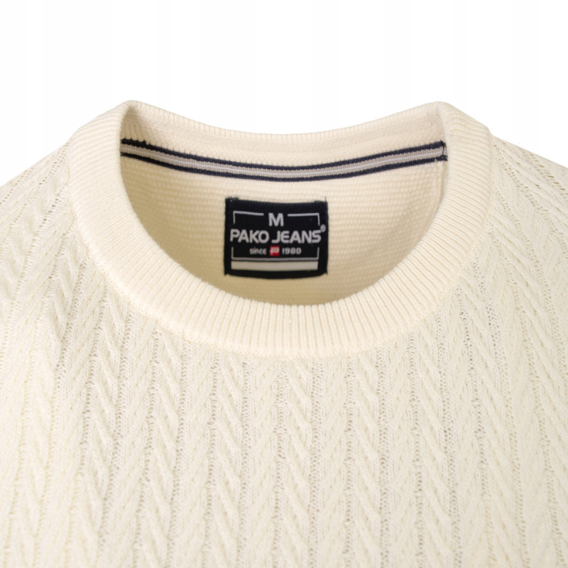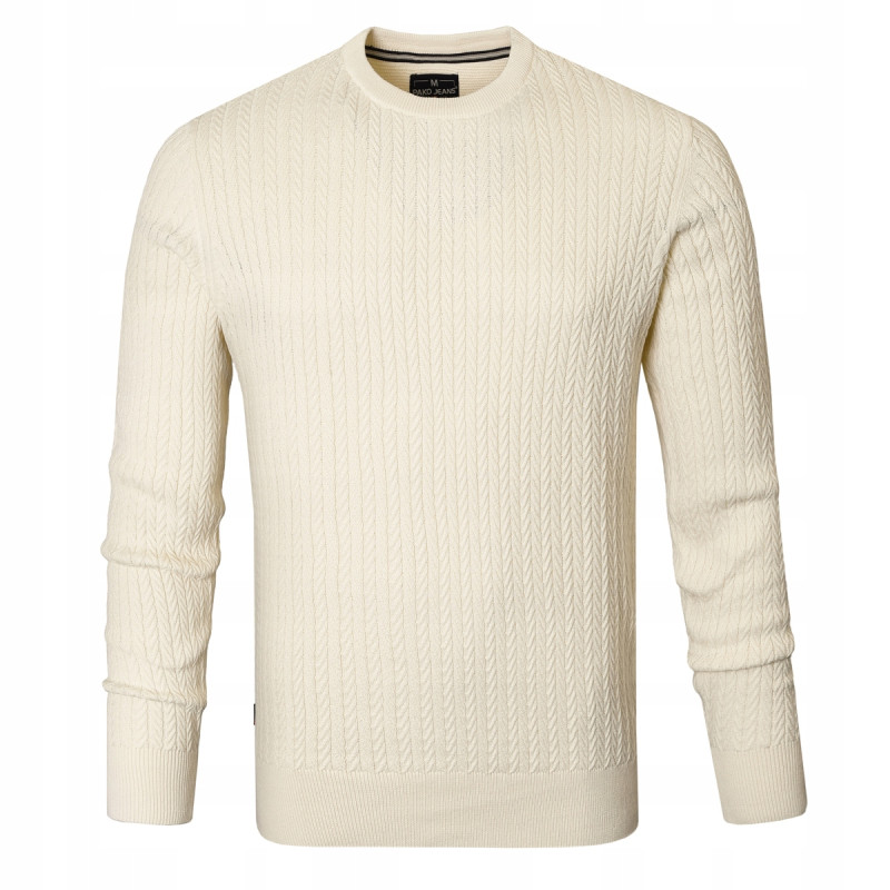 Elegancki SWETER Męski Bawełniany NICO KREMOWY Warkoczowy Splot Pako Jeans