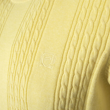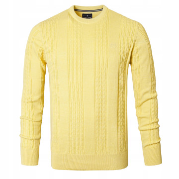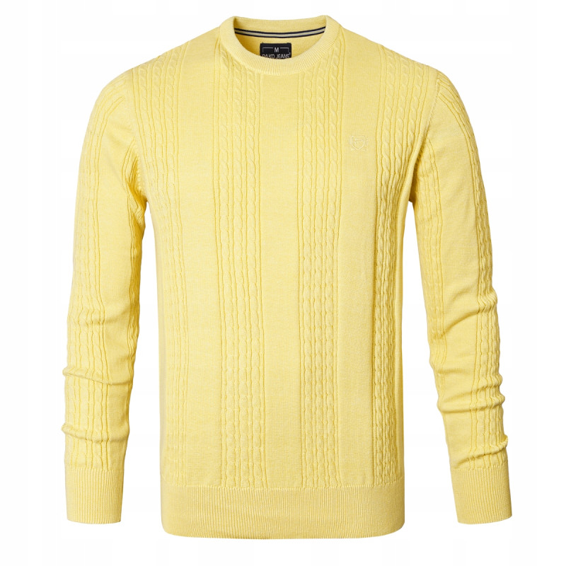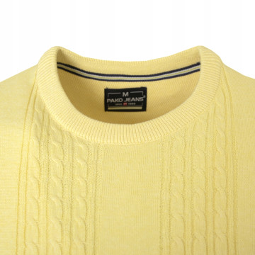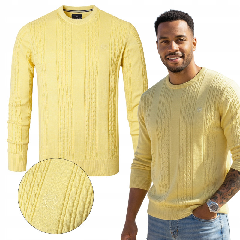 Elegancki SWETER Męski Bawełniany FLINT ŻÓŁTY Warkoczowy Splot Pako Jeans