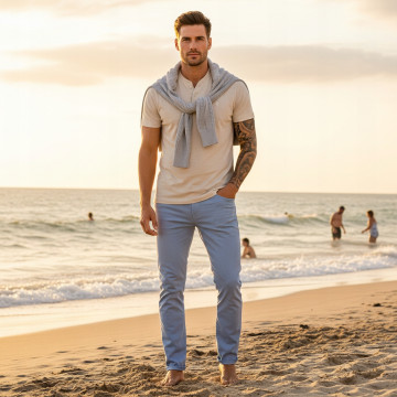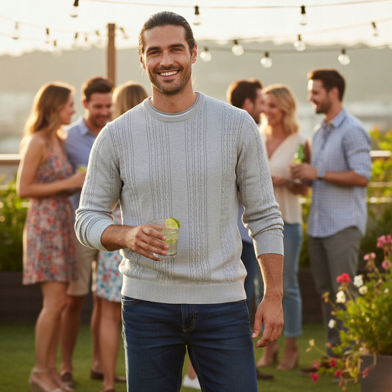 Klasyczny krój z okrągłym dekoltem dobrze układa się na sylwetce i łatwo dopasować go do jeansów, chinosów czy koszuli. Sweter sprawdzi się zarówno do pracy, w podróży, na randce, jak i na co dzień - na wiosnę, jesień oraz chłodniejsze letnie wieczory.