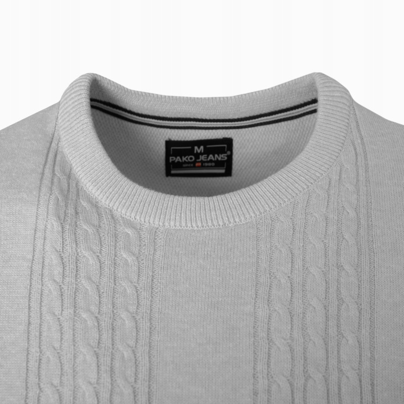 Elegancki SWETER Męski Bawełniany FLINT SZARY Warkoczowy Splot Pako Jeans