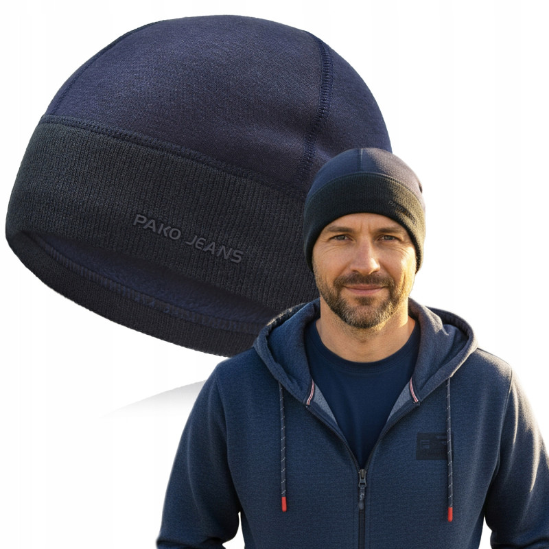 CZAPKA Męska ZIMOWA Ciepła Ocieplana Polarem na Mrozy Z.100 GRANATOWA Pako Jeans