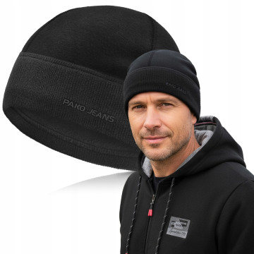 CZAPKA Męska ZIMOWA Ciepła Ocieplana Polarem na Mrozy Z.100 CZARNA Pako Jeans