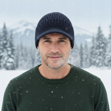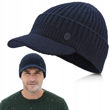 CZAPKA zimowa z daszkiem sportowa elastyczna GRANATOWA Pako Jeans